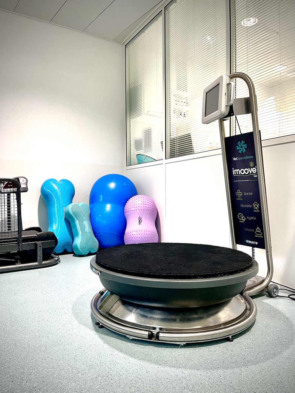 L’IMOOVE-Vet est une plateforme de rééducation basée sur la méthode musculoposturale®. Cette plateforme propose un environnement contrôlé où le patient est soumis à un mouvement élisphérique breveté à différents angles et vitesse. Cette technologie permet de rééduquer le système nerveux (proprioception) et postural (musculaire).